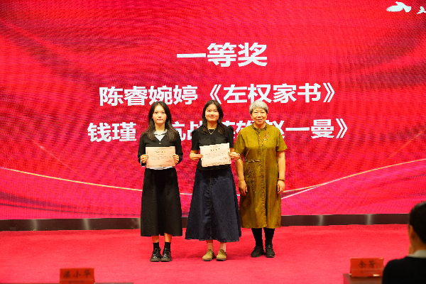 “薪火相传・走向复兴”篇章中,陈亚丽、郭娅曼、董高慧、朱贵凯等4人演唱《如愿》,满含对祖国的热爱与期许;优秀配音作品集锦回顾活动精彩瞬间。随后,现场正式揭晓“声载历史・语传薪火”双语配音活动获奖名单,梁小华院长、方璇副书记、许敏副院长等学院领导为获奖同学颁奖,对同学们用语言艺术传承红色基因的努力给予肯定。
