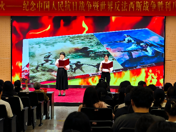 本报讯(记者 赵智慧 郭晶蕊)为缅怀革命先烈、传承红色精神,进一步激发师生的爱国情怀,结合学院外语专业特色与红色教育意义,由学院党总支精心组织,9月22日晚,外国语与教育学院党总支在成学楼106报告厅举办了“声载历史·语传薪火——纪念中国人民抗日战争暨世界反法西斯战争胜利八十周年”双语晚会。外国语与教育学院院长梁小华、党总支副书记方璇、副院长许敏、学院党员教师及200余名师生到场,共同回顾历史、致敬英雄。