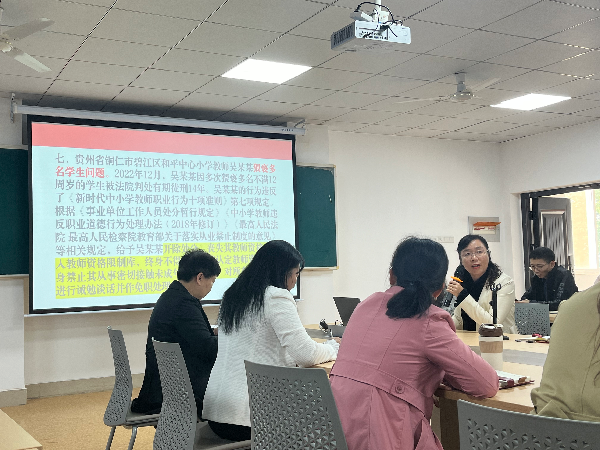 会上,许敏对7起案例进行了详细讲解,带领全体教职工学习了《新时代高校教师职业行为十项准则》,通过以案说纪,警示全体教师要严格遵守师德规范,加强自我修养,遵纪守法,以案为鉴、以学促改,加强思想自觉和行动自觉,严防师德失范行为发生。她强调,教师要把握师德第一标准,知敬畏、存戒惧、守底线、担重任,坚决杜绝理想信念缺失;要从反面典型案例中汲取教训,引以为戒,切实规范自身行为。