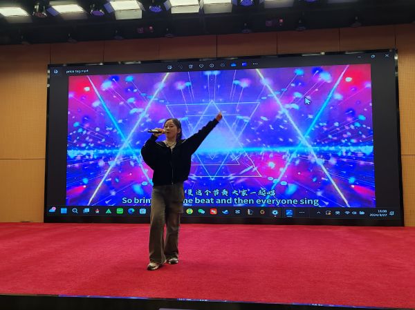 比赛结束,何艳老师作为评委老师代表发言,首先对选手的表演给予了高度的肯定,感谢他们为我们带来的精彩表演。其次,何艳老师从语言的角度分析了在英文歌曲中我们如何处理词与词之间的连读与弱化,让歌曲的整体效果更好。