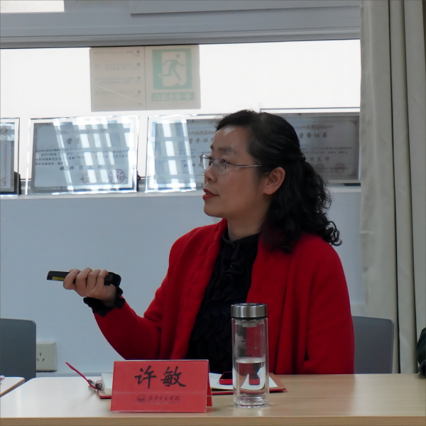 许敏从高层次人才引进、管理与考核,青年教师、教师转型培养培训,教师考核体系,外聘教师管理,教师队伍建设建议五个方面进行了详细汇报。