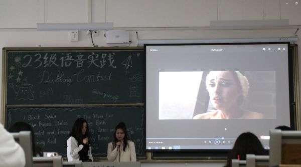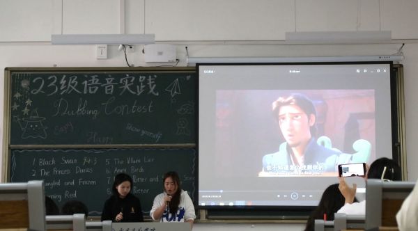 经过班级初赛选拔,本次决赛共有来自三个班级的九组优秀选手参赛。大赛过程中,九组同学依次登台,对精心选择的影视片段进行现场配音,展现了精湛的语言技巧和表演才能。期间,李彦汐、李佳琪等同学带来了精彩的中场歌曲表演,充分展示了我院学子的青春风采。经过激烈的角逐,外语类2302班朱贵凯、董书琦组以及陈睿婉婷、吴兰馨组分别凭借对《海洋奇缘》和《黑天鹅》的精彩诠释获得一等奖;刘茜、曾天尧等三组同学获得二等奖;丘嘉乐、赵文静等四组同学获得三等奖。