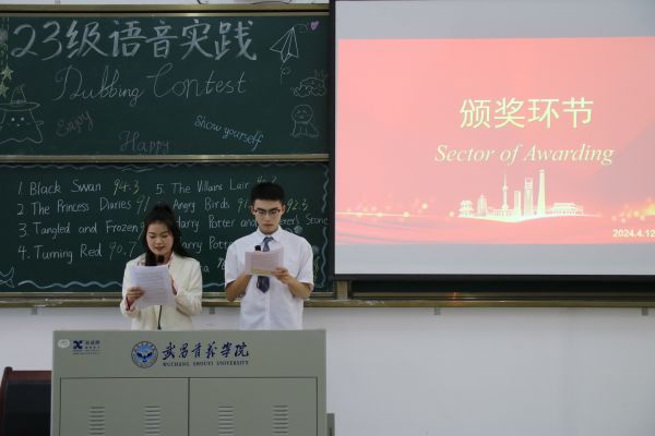 为激发学生英语学习兴趣,全面提升学生英语语音技能和口头表达能力,2024年4月12日下午,由我院英语系主办的外语类2023级英语配音大赛决赛在嘉鱼校区A215教室圆满举行,外语类23级全体学生到场参与,我院英语系教师郑龙悦、王誉晓、赵偲琪担任大赛评委,陈睿婉婷、彭国瑞同学担任主持。