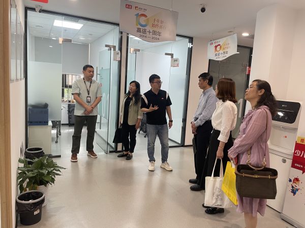 高途KM业务线武汉中心校长彭利飞、教学总监朱凯、集团校园招聘杨翰宇、王家湾校区店长曹蕾、武汉中心HRBP王萍等对我校一行的到访表示热烈欢迎。在彭利飞等人陪同下,我校一行参观了高途王家湾校区,深入了解了公司的运营模式、产品特点以及企业文化。随后,双方就人才培养、校企合作等内容展开了深入探讨和交流。高途代表介绍了公司的基本情况、发展历程、业务范围以及未来发展规划,双方共同观看了企业和学校宣传片。