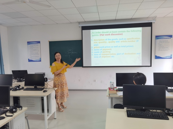 陈洁老师在《外贸英语函电》试讲中,教学设计层次分明,教学内容深入浅出、重点突出,能够帮助学生迅速熟悉并掌握商务英语信函的格式与写作方法。