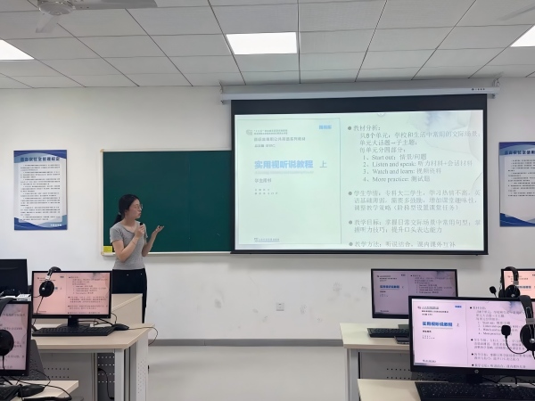 李红燕老师试讲了《英语视听说1》。她的课程介绍细致入微,说课环节逻辑清晰,特别融入了课程思政元素,将价值引领自然渗透于语言技能训练之中。课堂活动设计环环相扣,富有趣味性和启发性,充分体现了以学生为中心、能力培养与价值塑造并重的教学理念。