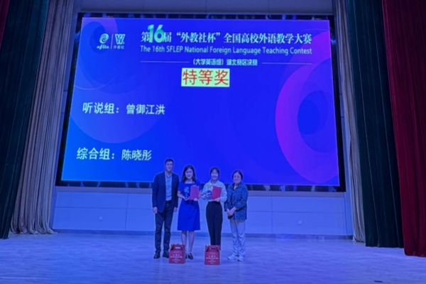 9月20日,第16届“外教社杯”全国高校外语教学大赛湖北省决赛在汉落幕。我院教师凭借优异表现再创佳绩,曾御江洪获视听说课组特等奖,甘露获综合课组二等奖。这是我院在该项赛事中首次斩获特等奖,实现历史性突破。曾御江洪将代表湖北省出征全国总决赛。