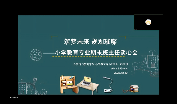 12月30日,我院小学教育专业2401班班主任王培和2402班班主任曹苗佳美召开了“筑梦未来”主题期末班主任谈心会。为切实了解学生当前的困惑与需求,使分享内容更具针对性,两位老师会前在各自班级发放了问卷,就学业压力、兴趣发展及现实困扰等方面进行了深入调研,旨在直击学生痛点,提供务实指导。