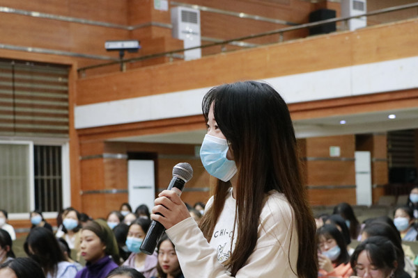 交流互动环节中,翻译2001班吴涵春表示,自己在提高个人知识能力时,于“面面俱到”与“术业专攻”之中陷入选择困难。对此闫栗丽指出,大学期间最重要的是培养自己的学习能力和思维方式,要将理论知识上升到实践层面,并且学会自我复盘、自觉提高专业素养。
