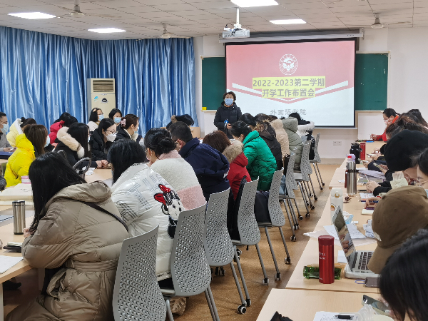 为了推进新学期各项工作顺利开展,扎实做好迎评准备工作,2023年2月12日,我院召开了新学期工作布置会,学院全体教职工参加,会议由院长徐秋梅主持。